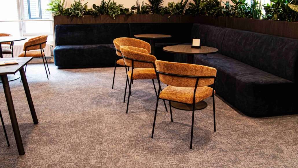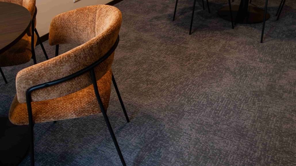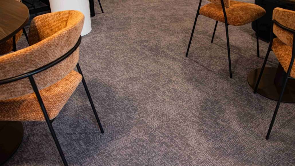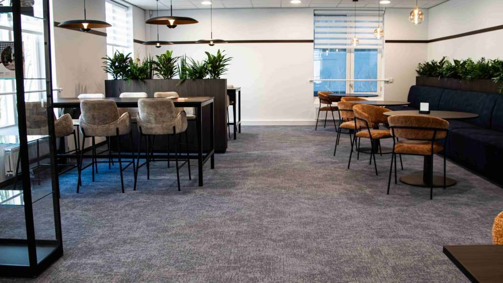 In de overige ruimtes van dit kantoorpand is gekozen voor tapijttegels. We hebben daar de Tailored collectie van Mohawk in vijf verschillende kleuren gelegd, namelijk 419, 542, 559, 627 en 731. Door verschillende kleuren van dezelfde collectie te gebruiken, ontstaat er variatie zonder dat het onrustig wordt. Daarnaast dragen de tapijttegels bij aan een prettige akoestiek en een comfortabele werkomgeving.